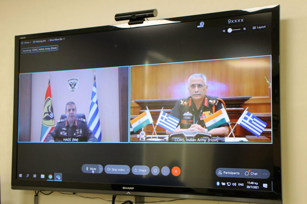 On Thursday 29 July 2021, the Chief/HAGS Lieutenant General Charalambos Laloussis had a teleconference with his Indian counterpart, General Manoj Mukund Naravane. Matters of mutual interest were discussed at the teleconference. #ΕλληνικόςΣτρατός, #HellenicArmy