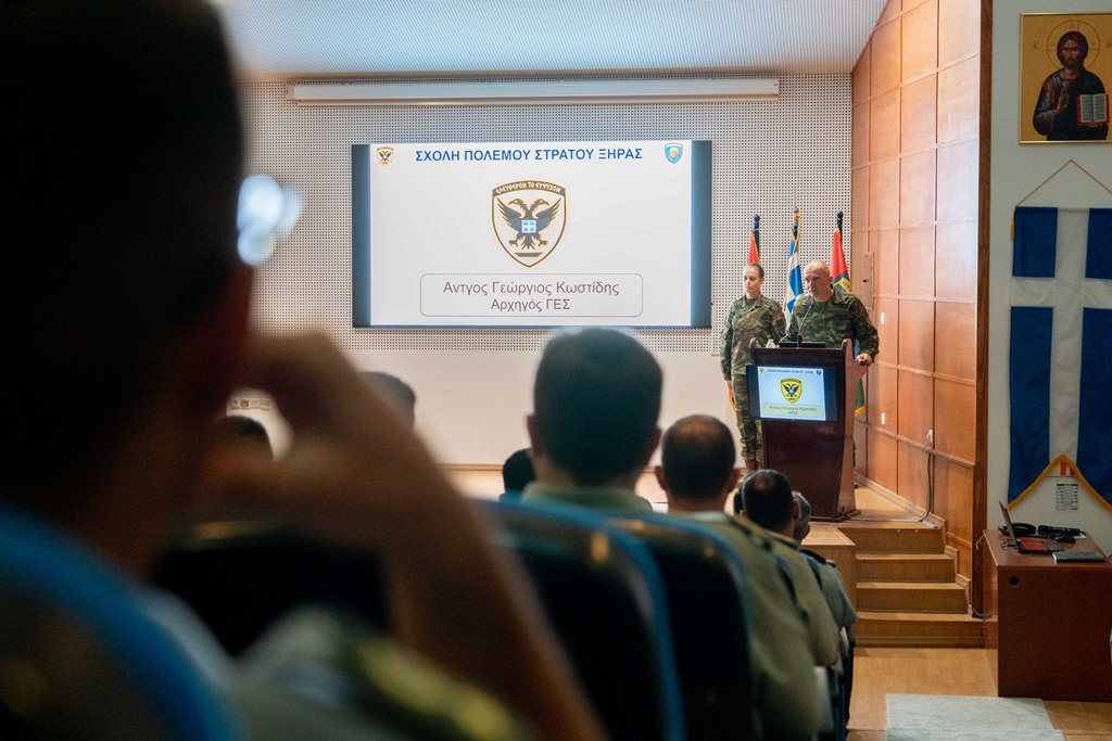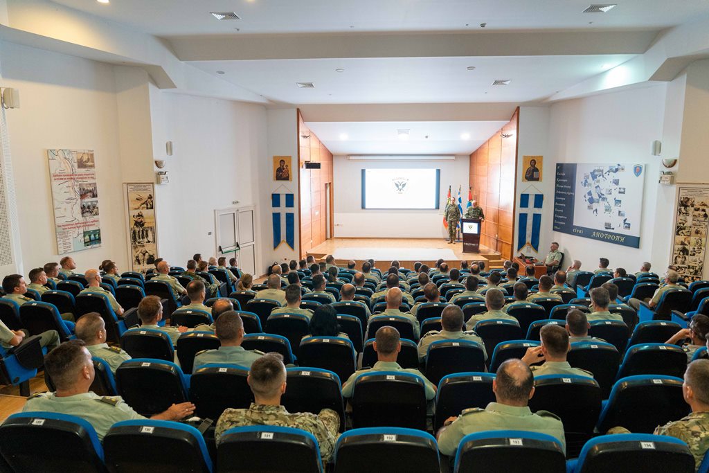On Tuesday 2 September 2025, Chief/HAGS Lieutenant General Georgios Kostidis, accompanied by the C Army Corps (NRDC-GR) “ALEXANDER THE GREAT” Commanding General Lieutenant General Athanasios Garinis, visited the Hellenic Army War College, in “CHIEFTAIN D. NTALIPIS” Army Camp, in Thessaloniki, where he made a brief address and provided guidelines to the students of the 13th Training Class, which began on Monday 1 September 2025, emphasising the importance of mission based Command.