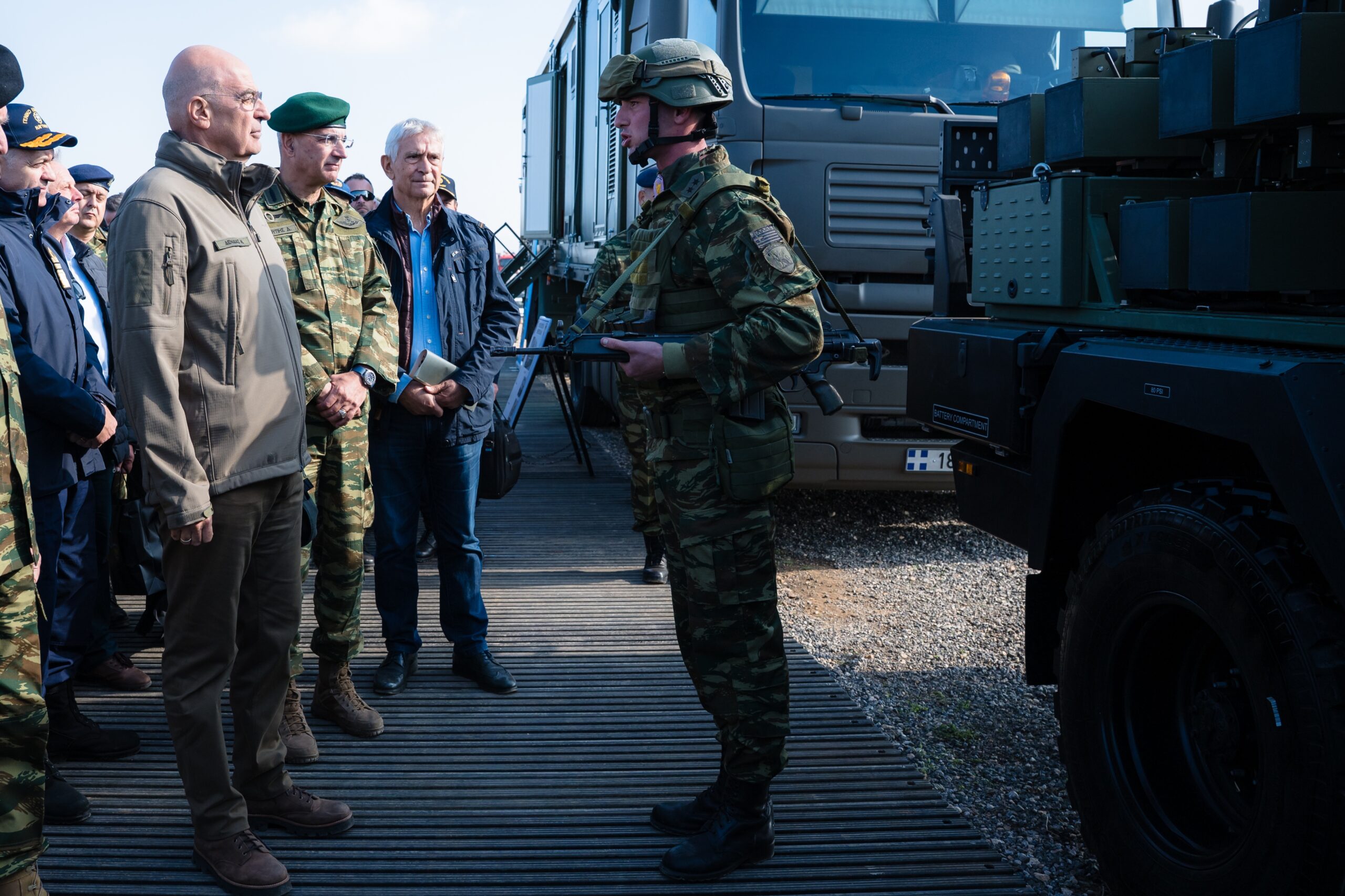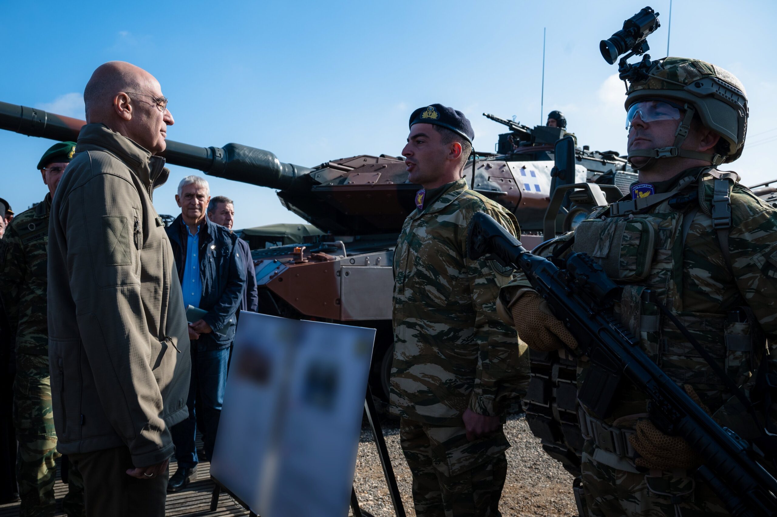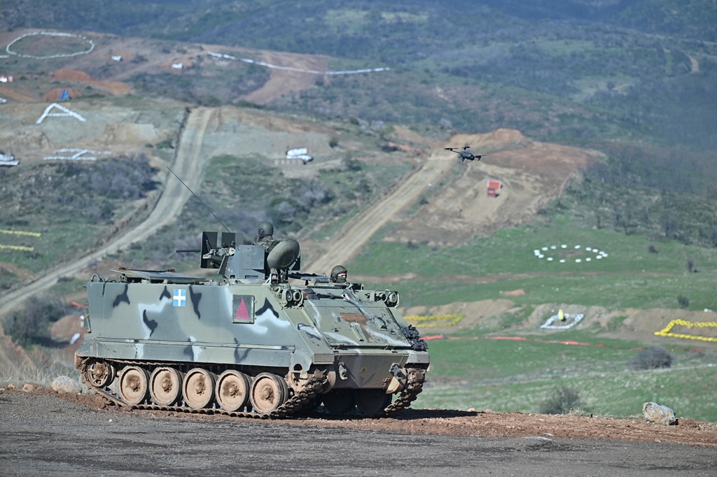 The Distinguished Visitors Day (DV – Day) of the “AISIOS OIONOS – 25” Field Training Exercise took place on Friday 14 November 2025, in the presence of the Minister of National Defence Mr Nikolaos Dendias, the Chief of the Hellenic National Defence General Staff General Dimitrios Choupis and the Chief of the Hellenic Army General Staff Lieutenant General Georgios Kostidis, at the “AETOS” Firing and Exercise Range in the Area of Alexandroupoli, with the participation of personnel and assets from the “THRACE” Superior Military Command of Thrace, the Special Warfare Command, the “EVROS” ΧΙΙ Mechanised Infantry Division, the “DIDYMOTEICHO” ΧVΙ Mechanised Infantry Division, the “MACEDONIA” ΧΧ Armour Division, the 71 “PONTUS” Airmobile Brigade, the “KILKIS-LACHANA” 1 Army Aviation Brigade and two sections of F-16 Aircraft of the Hellenic Air Force (HAF).