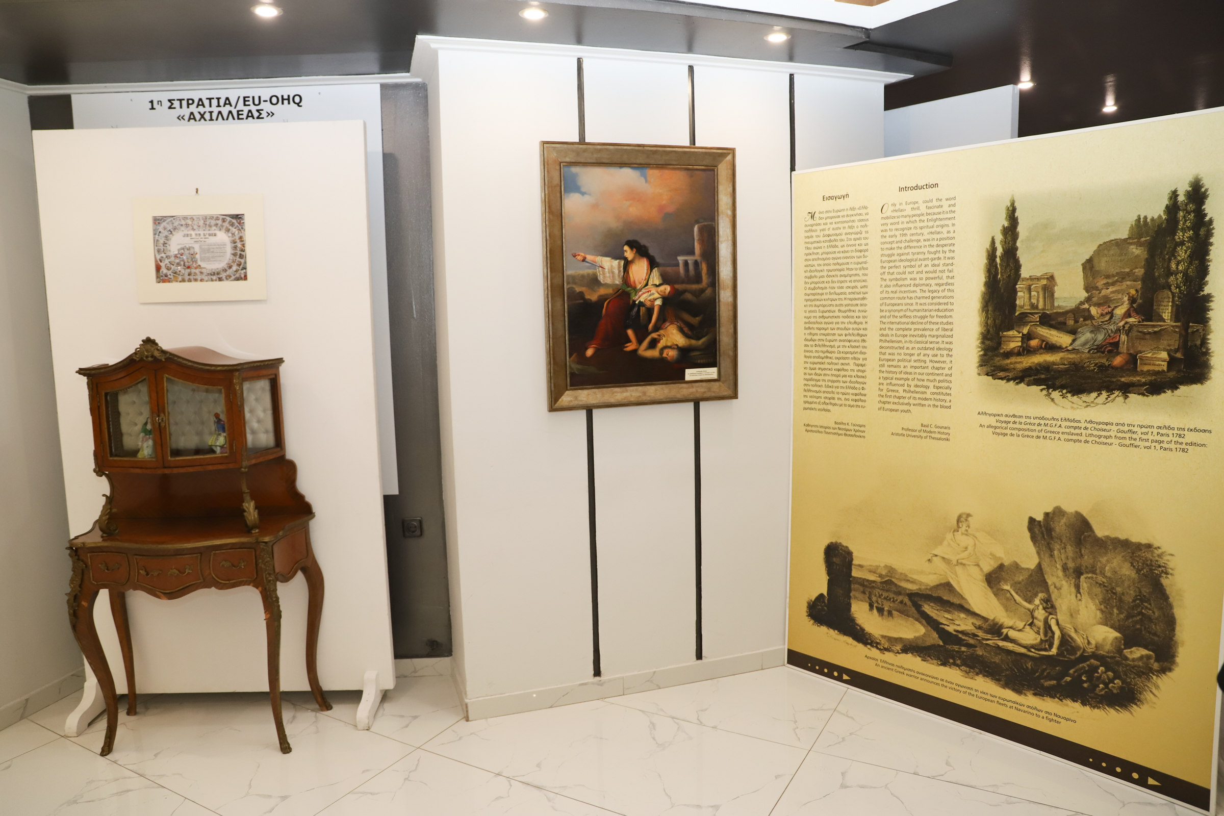 On Wednesday, 17 April 2024, within the framework of the Philhellenism and International Solidarity Day, an exhibition titled “The Philhellenes and their Contribution to the Nation’s Struggles” took place at the Larissa Officers’ Club, in the presence of the Commanding General of the Hellenic First Army/EU-OHQ “ACHILLEAS”, Lieutenant General Dimokritos Konstantakos.