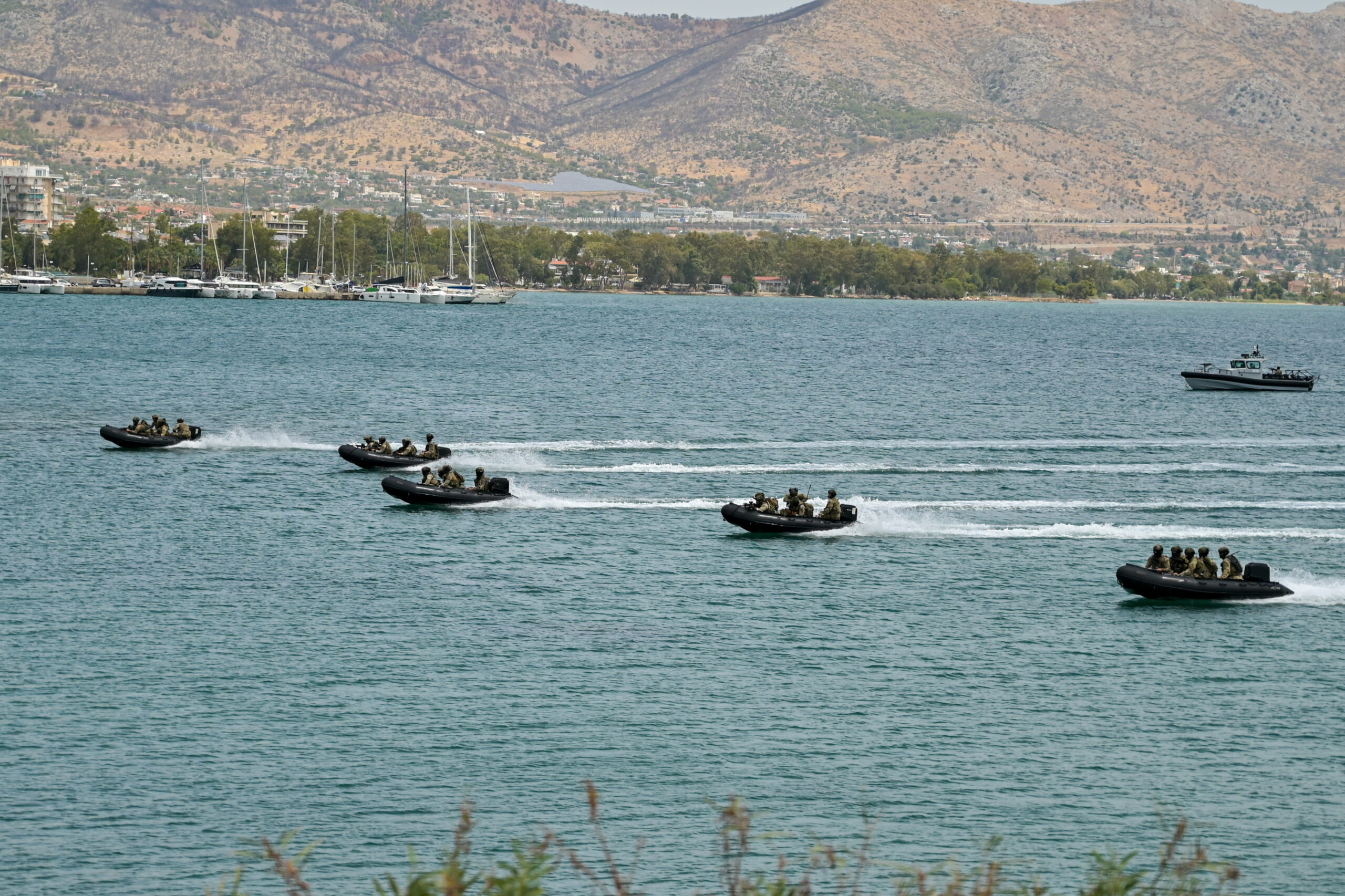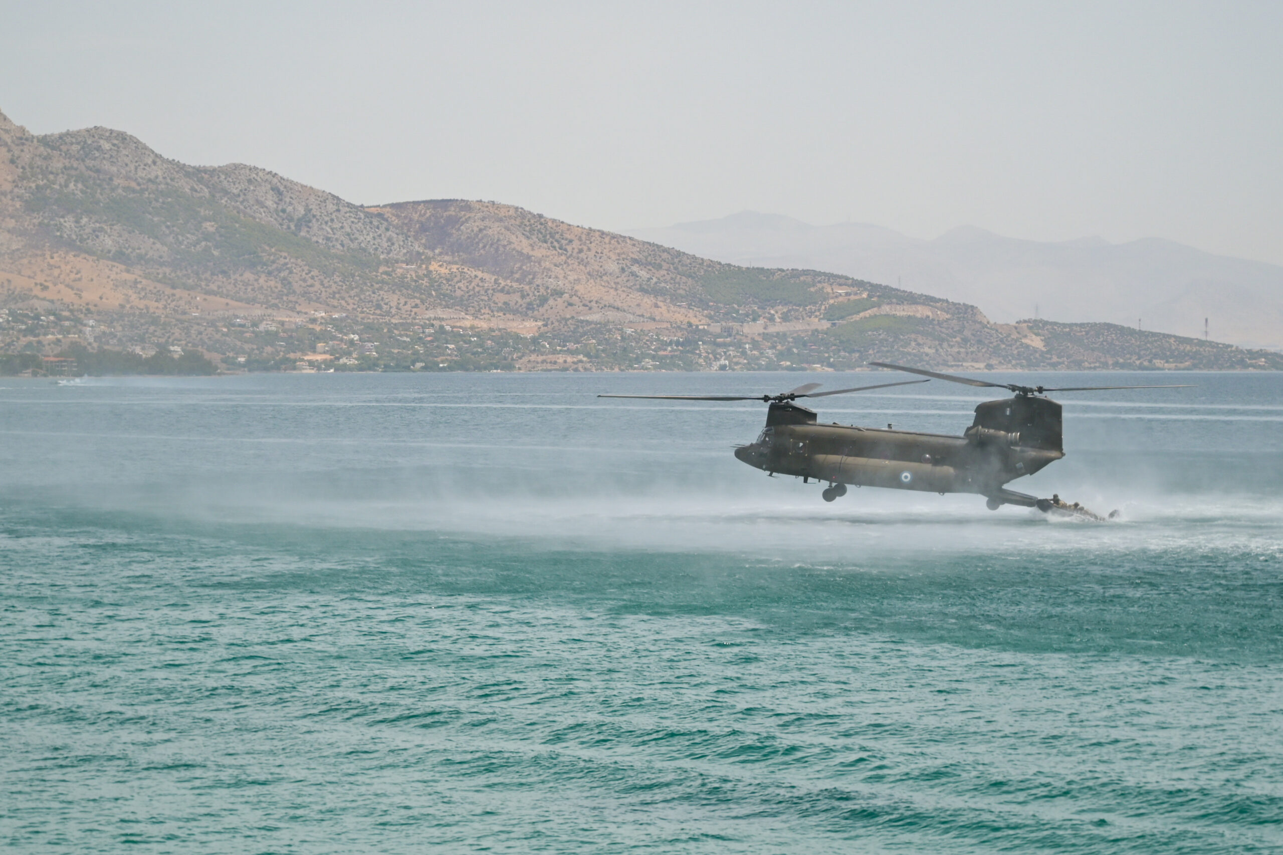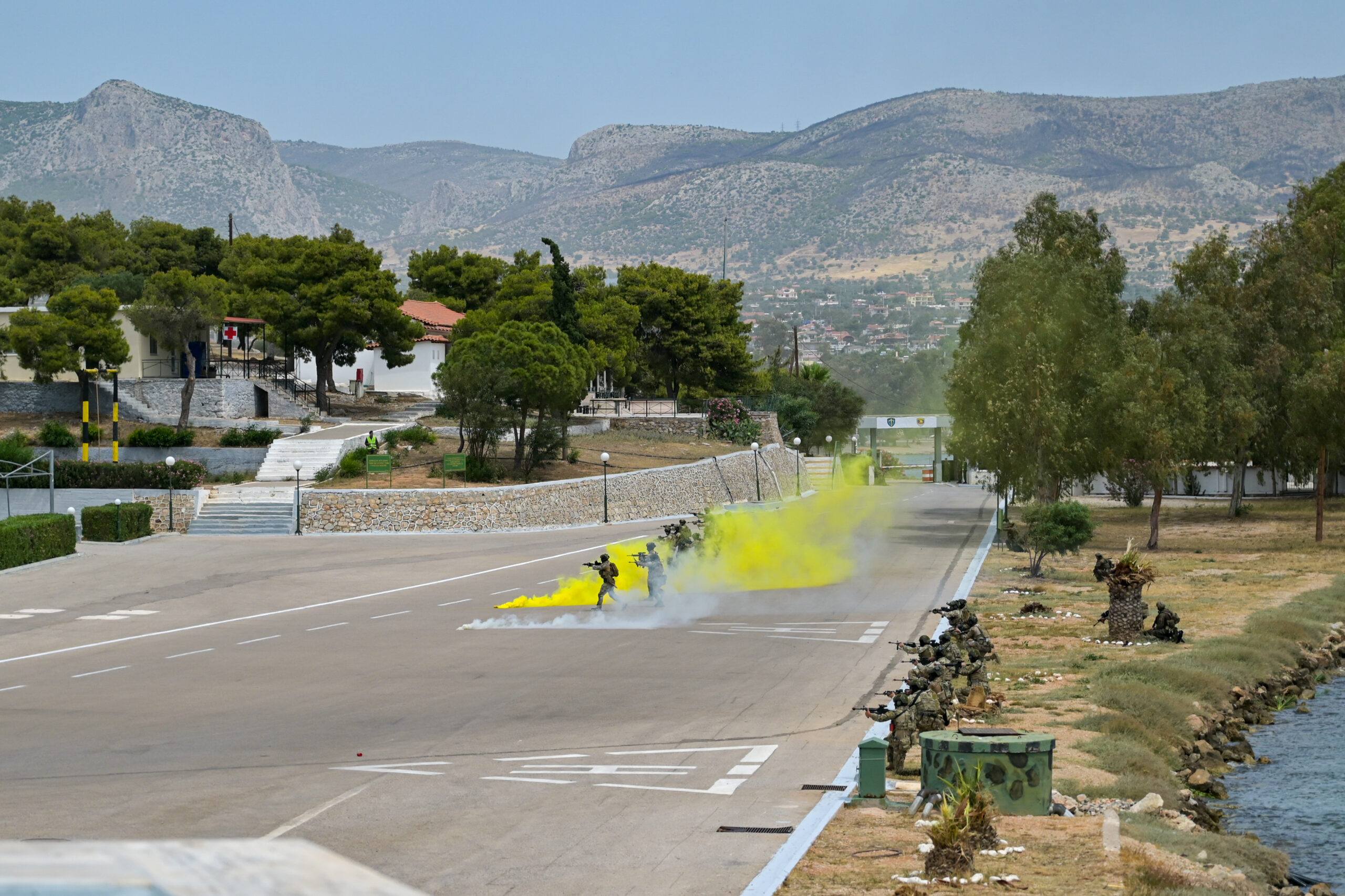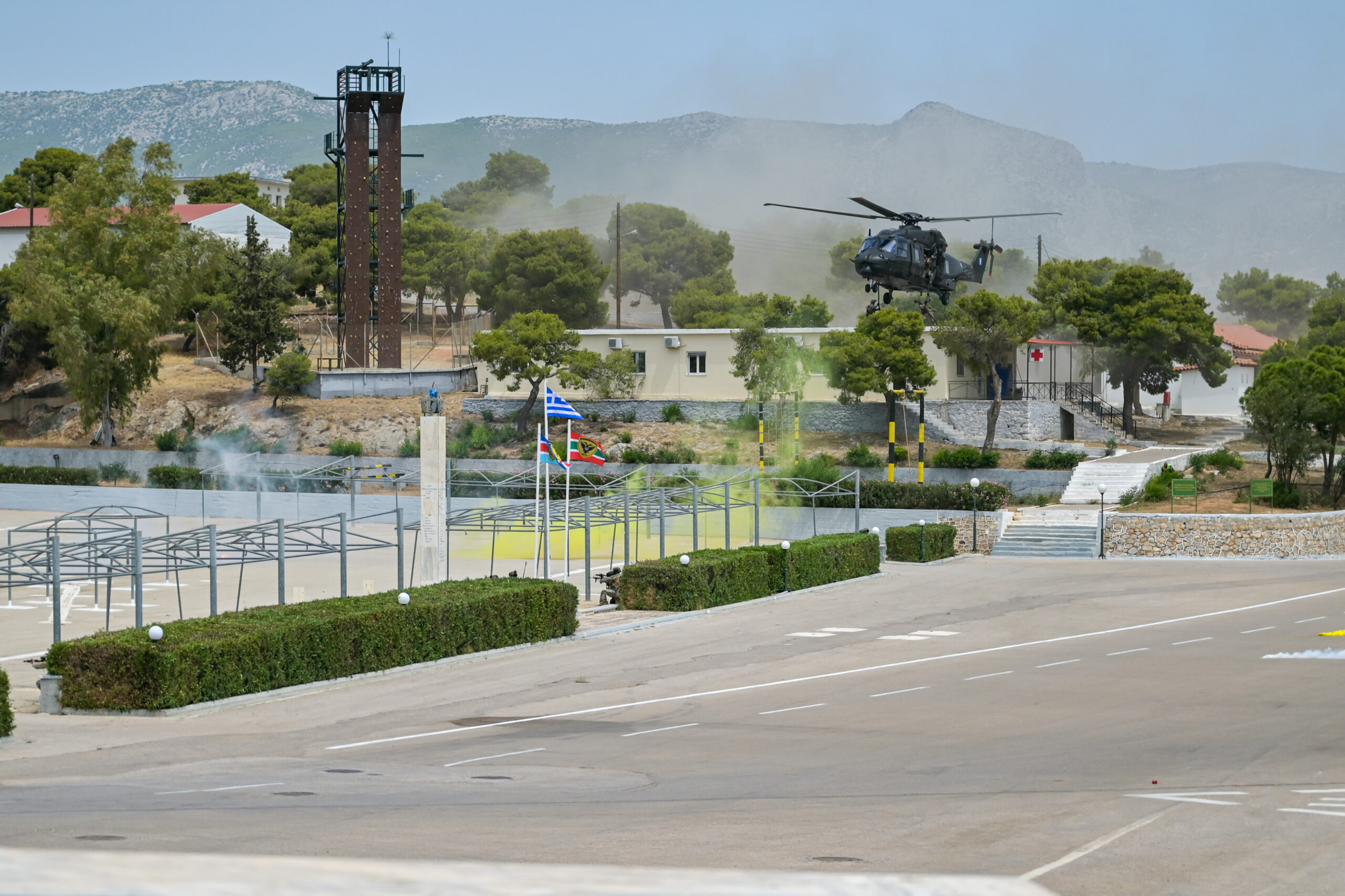 Afterwards, Lieutenant General Fahd bin Abdullah Al-Mutair, who was accompanied by the Director of the Hellenic Army Aviation Directorate, Major General Ioannis Himarios, visited Camp “Andrea Kallinski”, where a demonstration of the capabilities of special operations forces took place, in the presence of the Commanding General of the Special Warfare Command, Lieutenant General Prokopios Mavraganis.