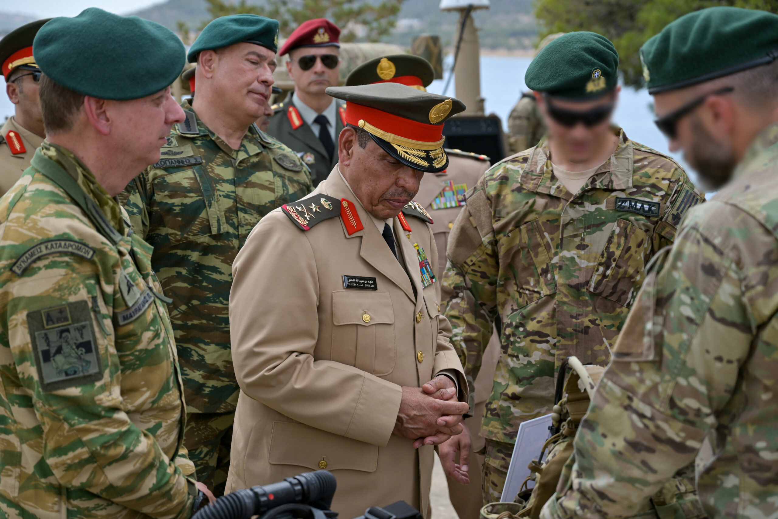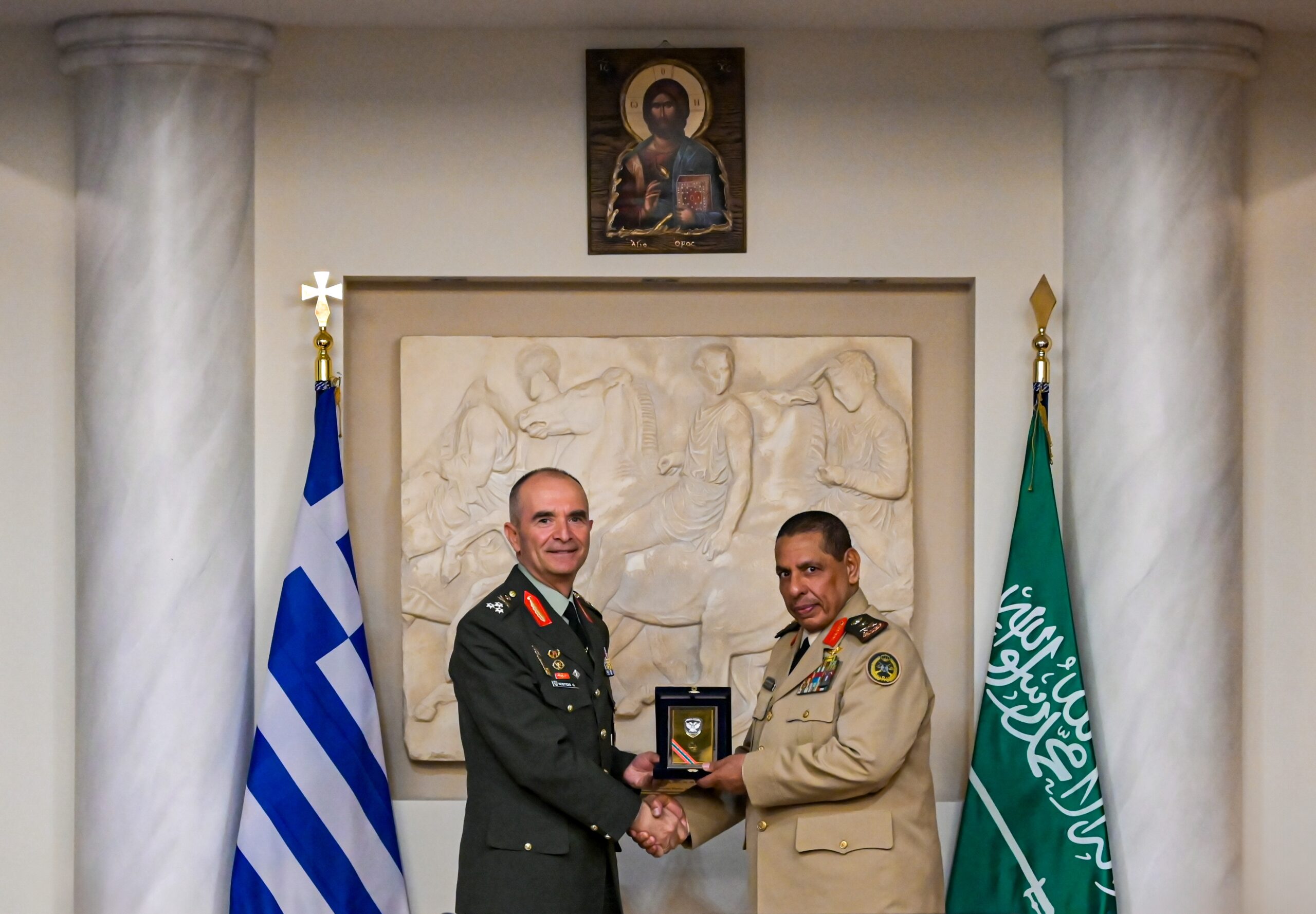 On Wednesday 05 June 2024, the Commander of Land Forces of Saudi Arabia, Lieutenant General Fahd bin Abdullah Al-Mutair, made a formal visit to our country, upon invitation of the Chief of Hellenic Army General Staff, Lieutenant General Georgios Kostidis. During the meeting, which was conducted in an excellent climate, they discussed the enhancement of the bilateral cooperation between the two Armies through: