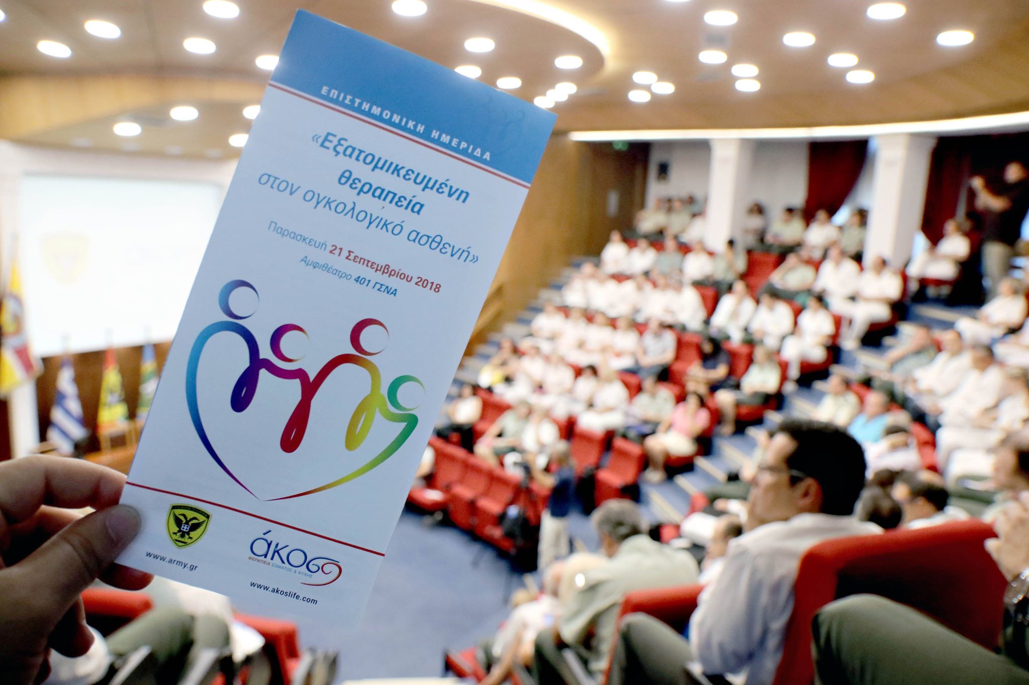 The scientific meeting forms part of a series of actions co-organized by the Army and “AKOS: Body and Soul Healing” Non-Profit corporation, within the framework of their cooperation. Its subject was “Personalized Treatment of Oncology Patients” and aimed at highlighting the importance of prevention, as a means to treat diseases.