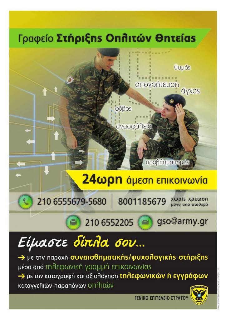 The Office can be reached through the following numbers: 210-6555679 and 210-6555680, FAX: 210 6552205 and e-mail: gso@army.gr, throughout the day and night.
