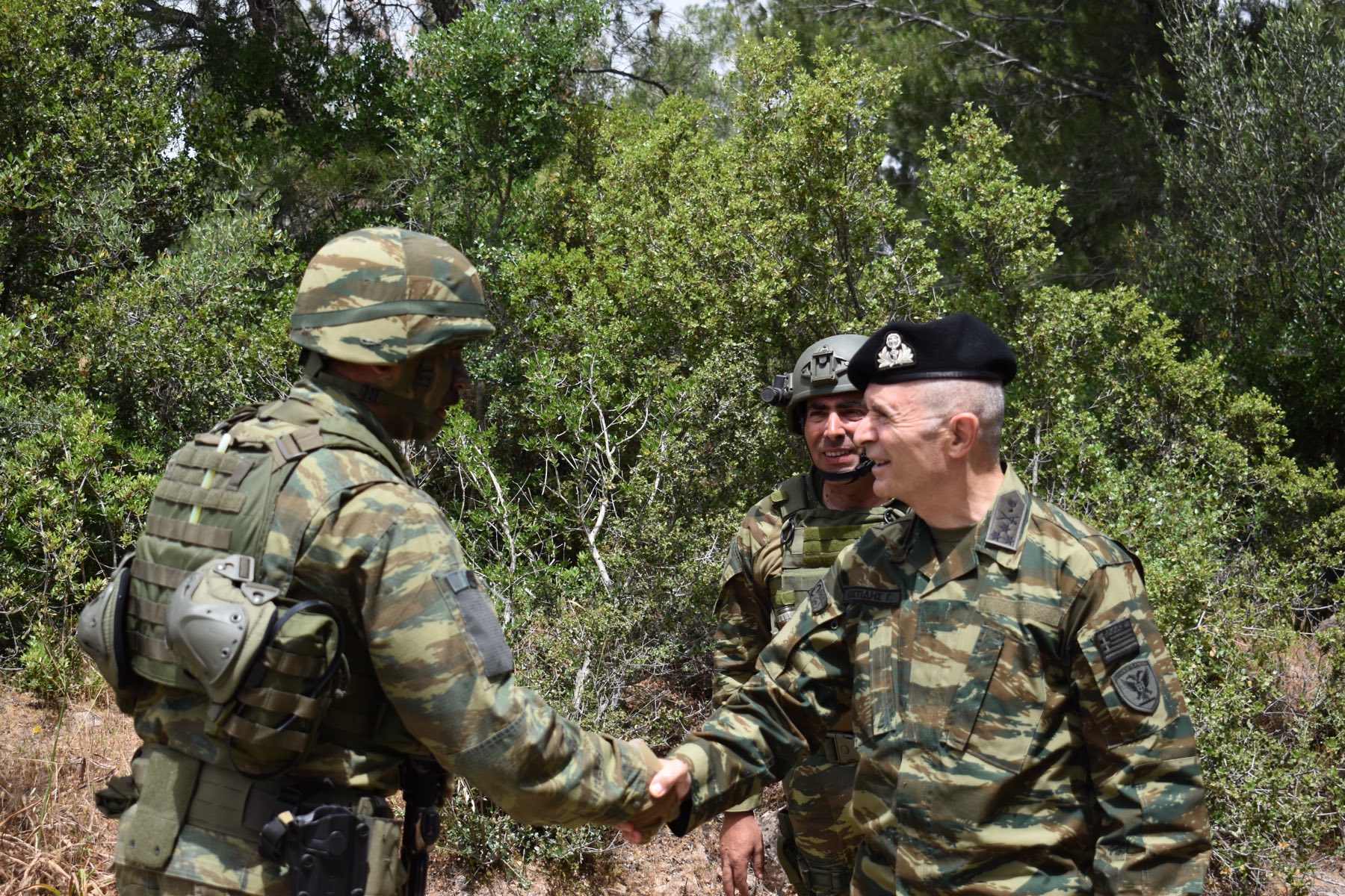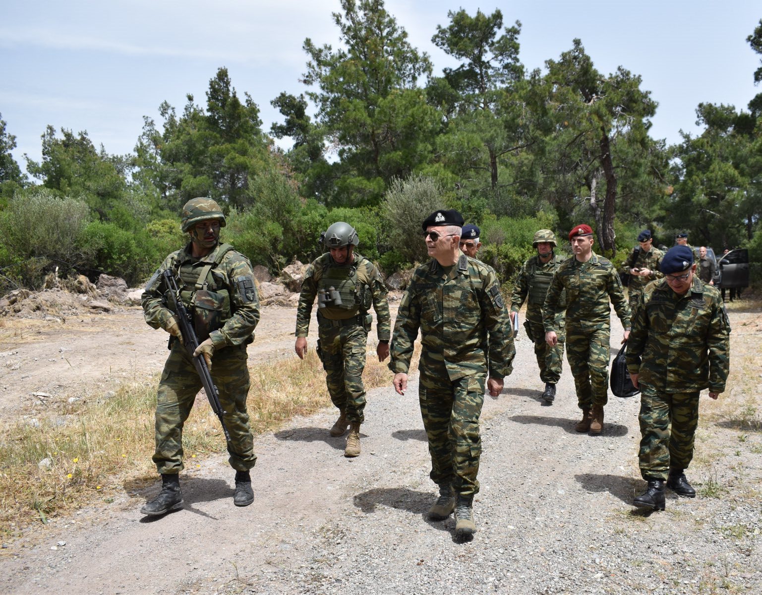 On Friday 16 May 2025, the Chief of the Hellenic Army General Staff Lieutenant General Georgios Kostidis, accompanied by the Commanding General of the Higher Military Command of Interior and Islands “AIGEAS” Lieutenant General Emmanouil Theodorou and the Commanding General of the 98 Higher National Guard Battalions Command “ARCHIPELAGOUS” Major General Nikolaos Gkretsas, conducted a visit to the Area of Responsibility of the 98 Higher National Guard Battalions Command.