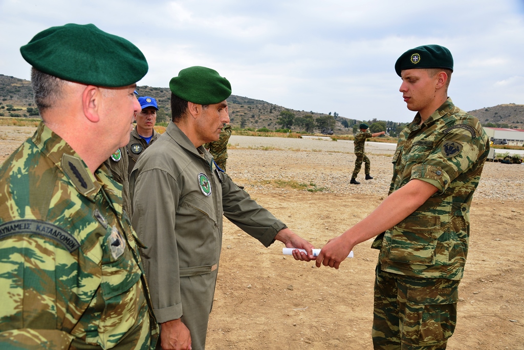 Στους αποφοιτήσαντες απονεμήθηκαν Πτυχία και Πτέρυγες Αλεξιπτωτιστή Στατικού Ιμάντα, από τον Διευθυντή της Διεύθυνσης Ειδικών Δυνάμεων του Γενικού Επιτελείου Στρατού, Υποστράτηγο Νικόλαο Χιονή, σε τελετή που πραγματοποιήθηκε στη Ζώνη Ρίψεως (ΖΡ) της Πάχης Μεγάρων, μετά την εκτέλεση του τελευταίου άλματος.