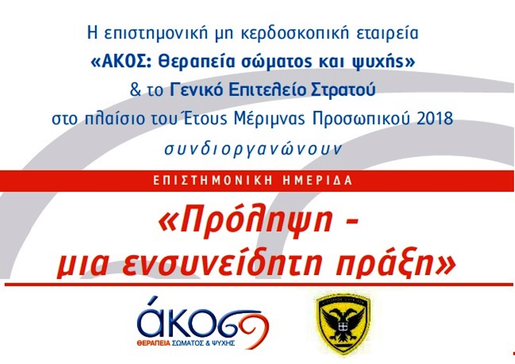 Η 96 Ανώτερη Διοίκηση Ταγμάτων Εθνοφυλακής (96 ΑΔΤΕ-«ΧΙΟΣ»), και η Μη Κερδοσκοπικού Χαρακτήρα Εταιρεία ΑΚΟΣ, πραγματοποίησαν στη νήσο Χίο από 27 έως 29 Ιουλίου 2018, τρεις επιστημονικές ημερίδες με θέμα «Πρόληψη, μια Ενσυνείδητη Πράξη», για την ανάδειξη της σημασίας της πρόληψης στον καρκίνο.