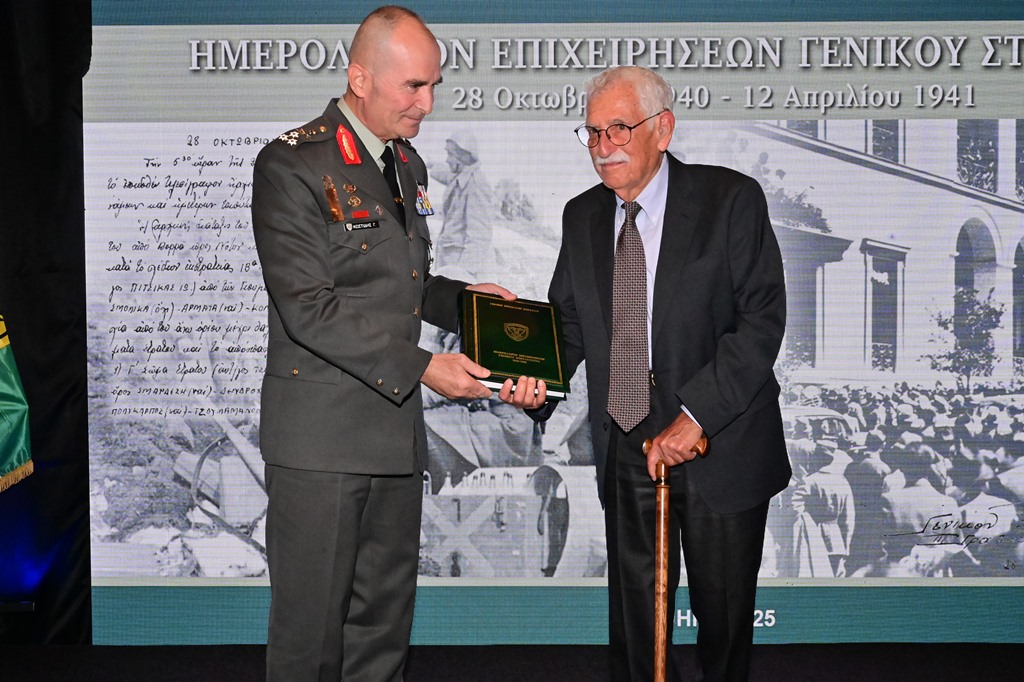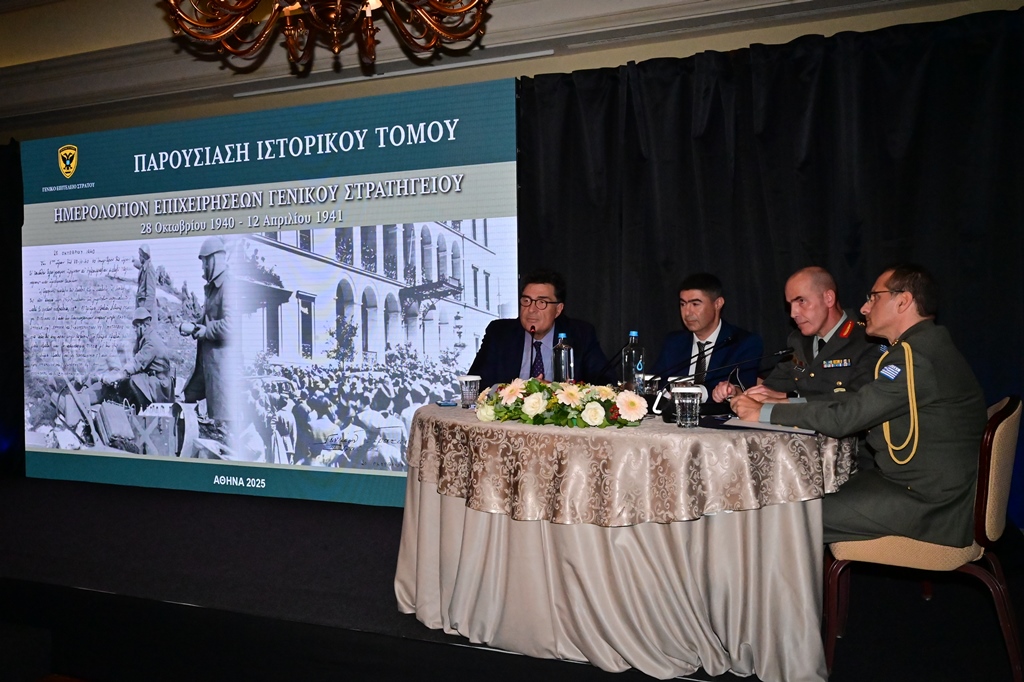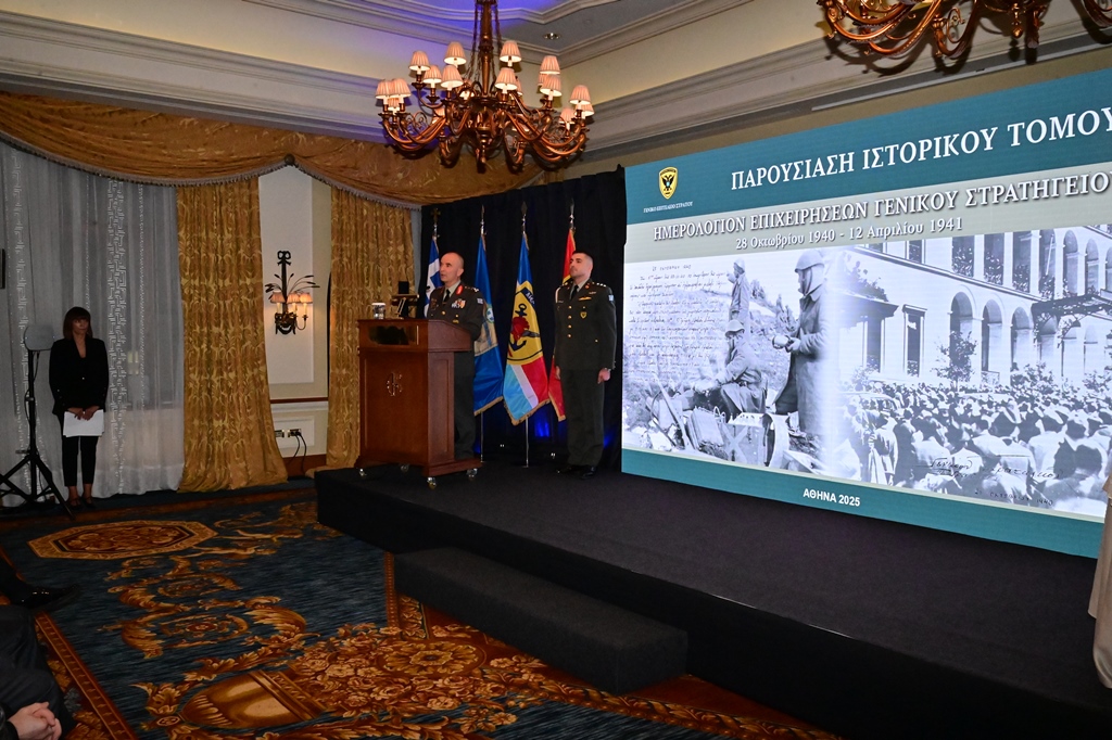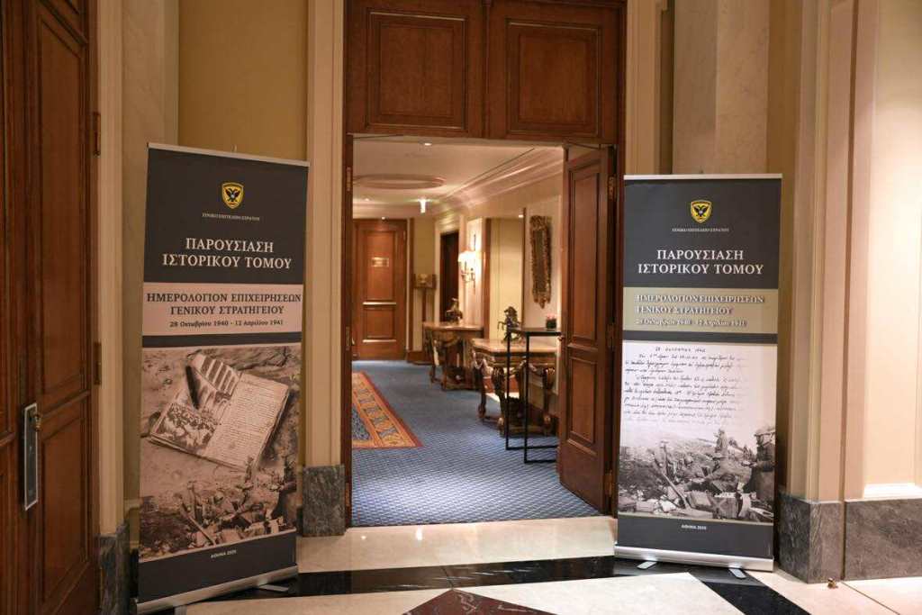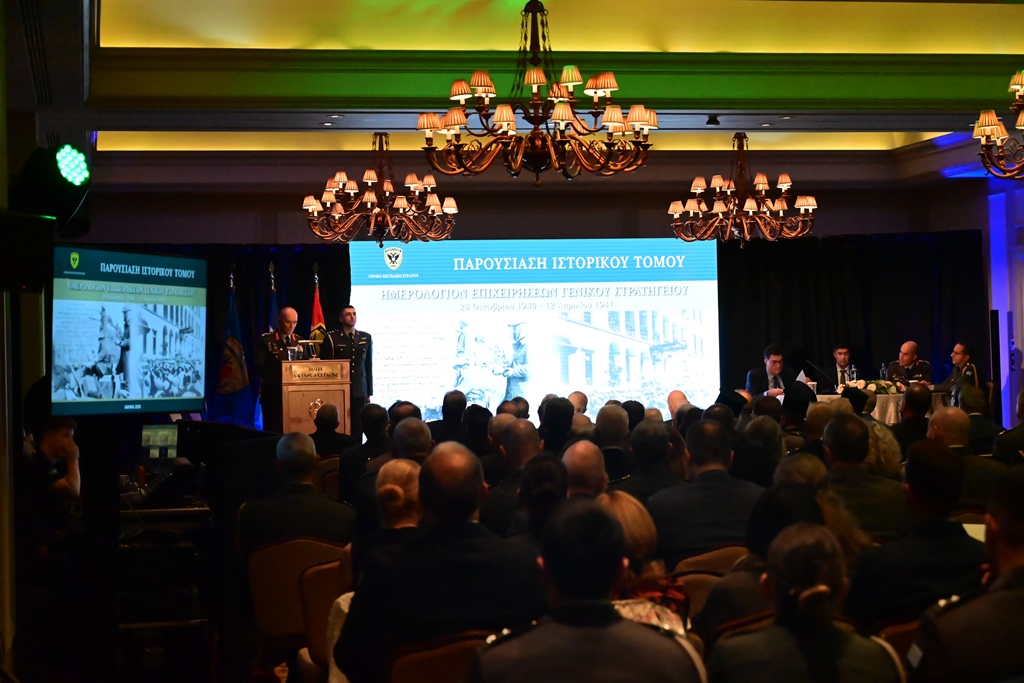 Την Τρίτη 21 Οκτωβρίου 2025, παρουσία του Υπουργoύ Εθνικής Άμυνας κ. Νικόλαου Δένδια, του Υφυπουργoύ Εθνικής Άμυνας κ. Θανάση Δαβάκη, του Αρχηγού του Γενικού Επιτελείου Εθνικής Άμυνας Στρατηγού Δημήτριου Χούπη, του Αρχηγού του Γενικού Επιτελείου Στρατού Αντιστράτηγου Γεώργιου Κωστίδη, του Βουλευτή Δυτικού Τομέα Αθηνών κ. Δημήτριου Καλογερόπουλου, ως εκπρόσωπος του Προέδρου της Βουλής των Ελλήνων και του Θεοφιλέστατου Επισκόπου Χριστουπόλεως κ. Βαρνάβα Θεοχάρη, ως εκπρόσωπος τoυ Mακαριώτατου Αρχιεπισκόπου Αθηνών και Πάσης Ελλάδος κ.κ Ιερώνυμου Β΄, πραγματοποιήθηκε στο ξενοδοχείο «Μεγάλη Βρεταννία», η εκδήλωση παρουσίασης του ιστορικού τόμου, με τίτλο «Ημερολόγιο Επιχειρήσεων Γενικού Στρατηγείου 1940–1941», τον οποίο επιμελήθηκε η Διεύθυνση Ιστορίας Στρατού (ΔΙΣ), στον χώρο όπου κατά τη διάρκεια του Β΄ Παγκοσμίου Πολέμου στεγάστηκε το Γενικό Στρατηγείο του Ελληνικού Στρατού.