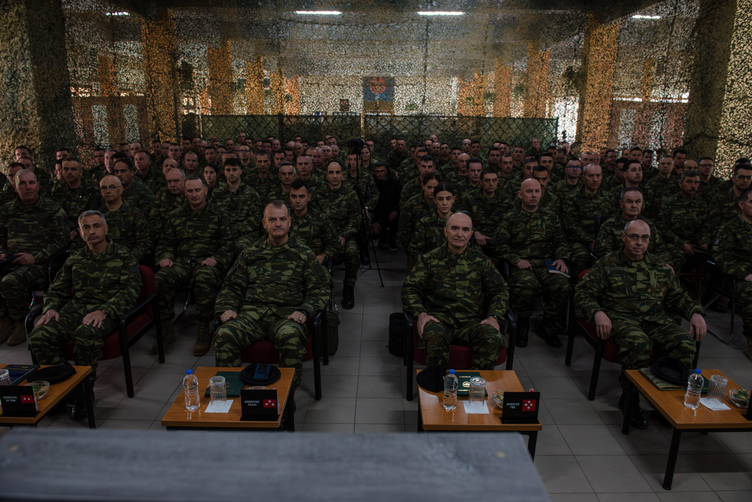 Στη συνέχεια, ο Αρχηγός επισκέφθηκε το Στρατόπεδο «ΥΠΤΓΟΥ ΝΙΚΟΛΑΟΥ ΔΕΛΑΓΡΑΜΜΑΤΙΚΑ» στον Προβατώνα, όπου έδωσε κατευθυντήριες οδηγίες στους Διοικητές των Μονάδων – Ανεξάρτητων Υπομονάδων της ΧΧ Τεθωρακισμένης Μεραρχίας (ΧΧ ΤΘΜ) «ΜΑΚΕΔΟΝΙΑ», της ΧΙΙ Μηχανοκίνητης Μεραρχίας Πεζικού (ΧΙΙ Μ/Κ ΜΠ) «ΕΒΡΟΣ», καθώς και της 29 Μηχανοποιημένης Ταξιαρχίας (29 Μ/Π ΤΑΞ) «ΠΟΓΡΑΔΕΤΣ» και ενημερώθηκε για την αποστολή, τις επιχειρησιακές και εκπαιδευτικές δραστηριότητες των Σχηματισμών.