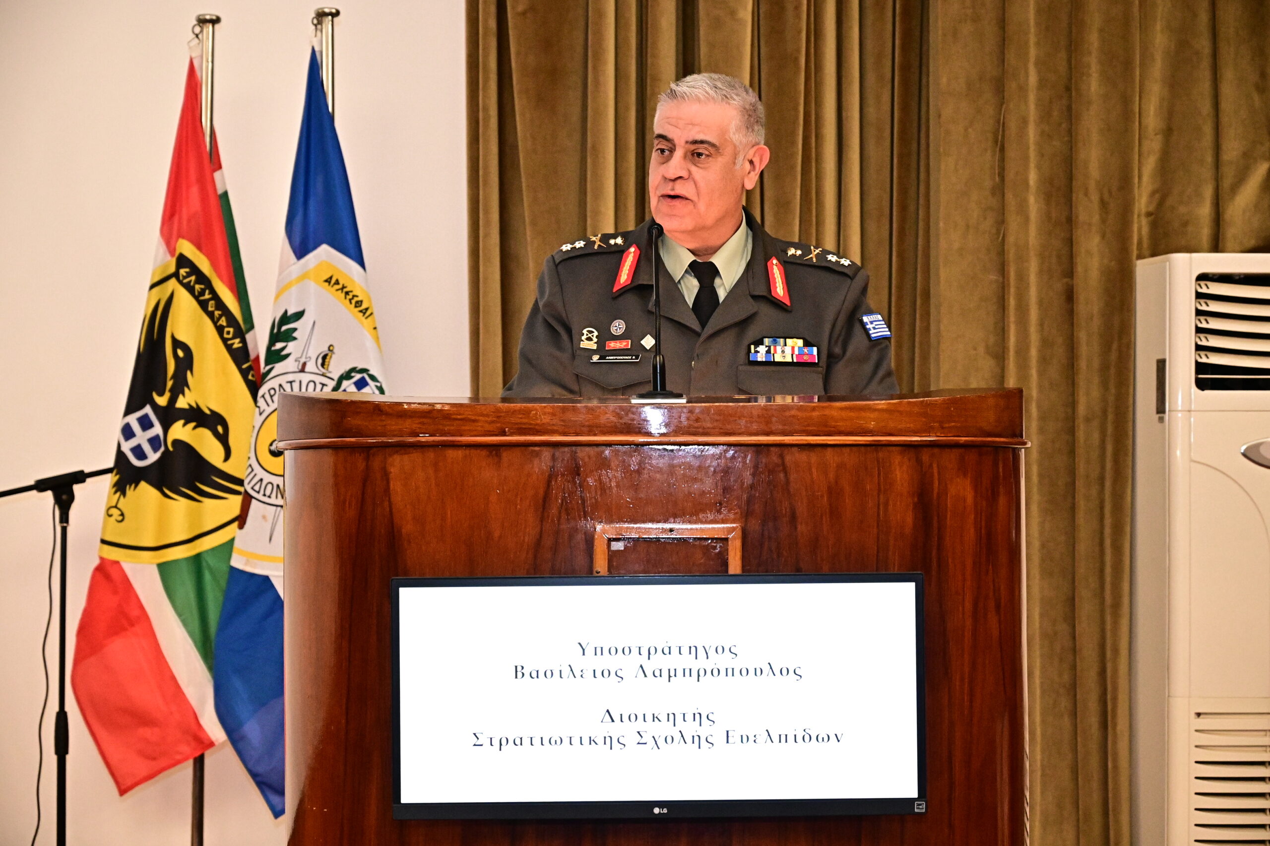Το παρόν έδωσαν, ο Πρέσβης της Κυπριακής Δημοκρατίας στην Αθήνα κ. Σταύρος Αυγουστίδης, ο Διοικητής της Διακλαδικής Διοίκησης Ακαδημαϊκής Εκπαίδευσης Αντιστράτηγος Αναστάσιος Πολύχρονος, η Πρόξενος της Κυπριακής Δημοκρατίας, κα Χριστίνα – Στέλλα Ζίγκα και ο Διοικητής της ΣΣΕ Υποστράτηγος Βασίλειος Λαμπρόπουλος.