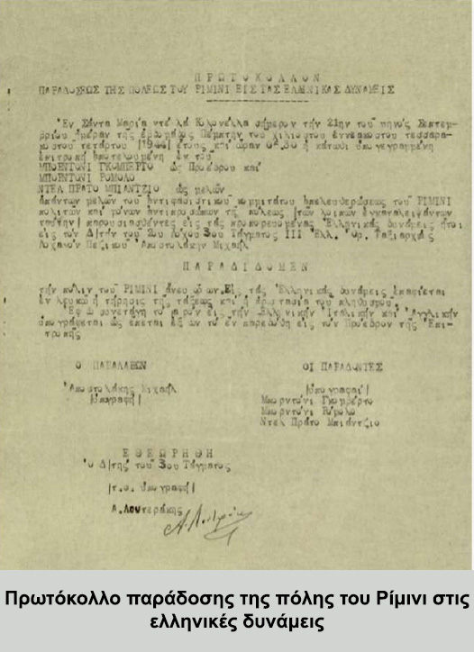 Η «Ταξιαρχία του Ρίμινι» έγραψε νέες σελίδες ιστορίας για την Ελλάδα τοποθετώντας την στο στρατόπεδο των νικητών. Η επιτυχία αυτή συνδέθηκε με την ελπίδα και τη δημιουργία προϋποθέσεων για την απελευθέρωση της πατρίδας από την Κατοχή.