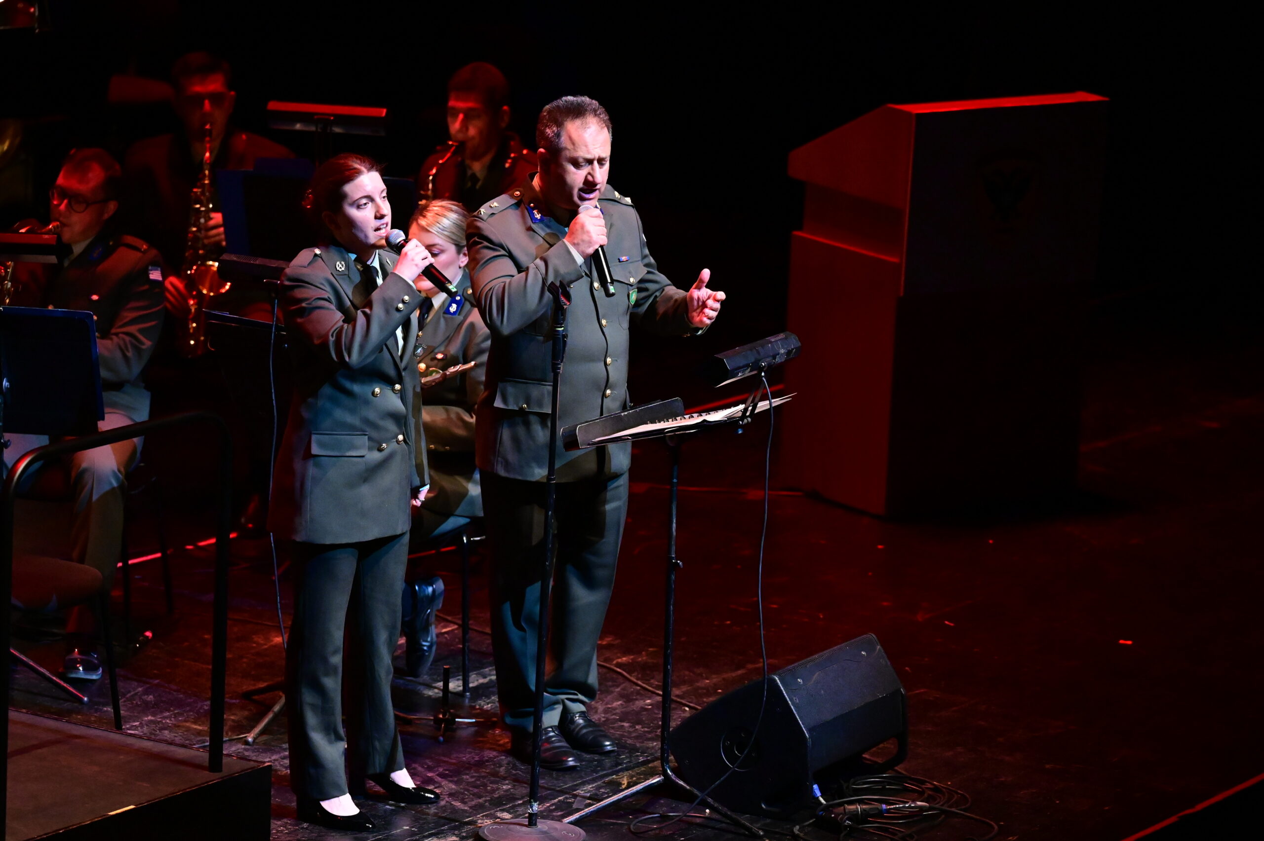 Στη συνέχεια, πραγματοποιήθηκε μουσικό αφιέρωμα με ερμηνευτές την κα Τζίνα Φωτεινοπούλου και τον κ. Μιχάλη Δημητράκο, τους οποίους πλαισίωνε η στρατιωτική μουσική της ΑΣΔΥΣ και η Ορχήστρα Σύγχρονης Μουσικής της ΕΡΤ.
