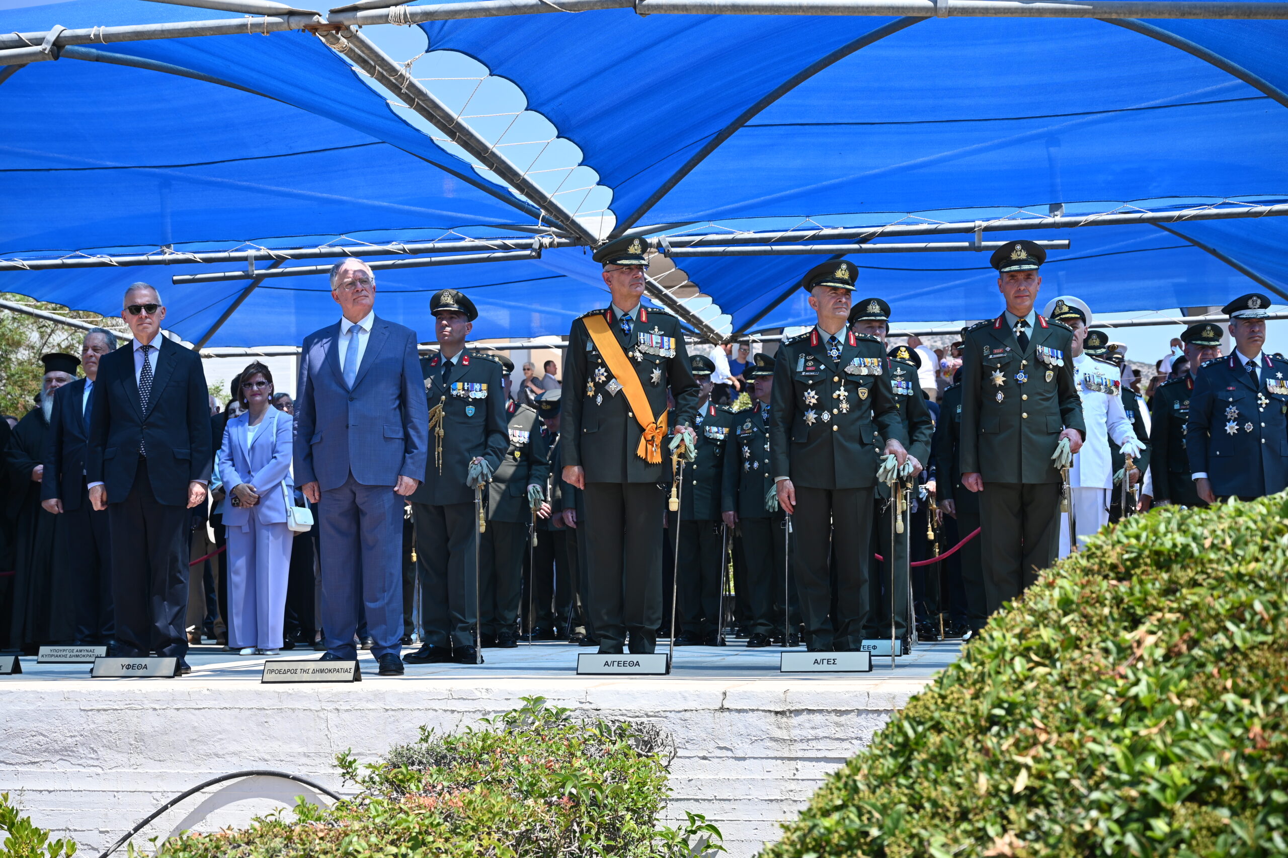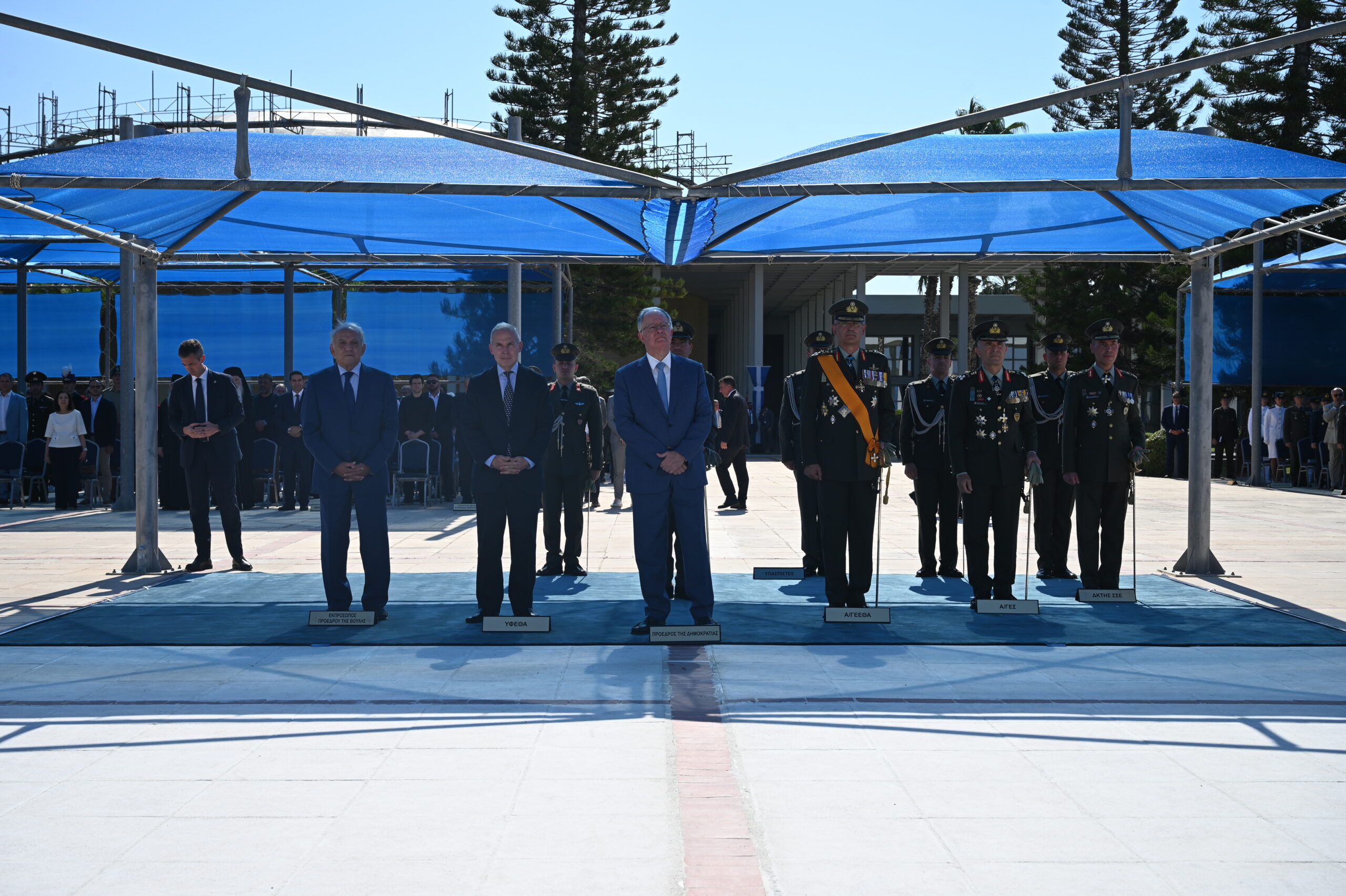 Στην τελετή παρέστησαν ο Βουλευτής Νοτίου Τομέα Αθηνών κ. Διονύσιος Χατζηδάκης ως εκπρόσωπος του Προέδρου της Βουλής, ο Υφυπουργός Εθνικής Άμυνας κ. Θανάσης Δαβάκης, ο Βουλευτής Ηλείας κ. Μιχαήλ Κατρίνης ως εκπρόσωπος του Αρχηγού της Μείζονος Αντιπολίτευσης, ο Υπουργός Άμυνας της Κυπριακής Δημοκρατίας κ. Βασίλης Πάλμας, η Βουλευτής Ιωαννίνων κα Μαρία – Αλεξάνδρα Στεφάνου Κεφάλα, ο Αρχηγός του Γενικού Επιτελείου Εθνικής Άμυνας Στρατηγός Δημήτριος Χούπης, ο Μητροπολίτης Γλυφάδας, Ελληνικού, Βούλας, Βουλιαγμένης & Βάρης κ.κ. Αντώνιος, ο Αρχηγός του Γενικού Επιτελείου Στρατού Αντιστράτηγος Γεώργιος Κωστίδης, ο Αρχηγός του Γενικού Επιτελείου Ναυτικού Αντιναύαρχος Δημήτριος – Eλευθέριος Κατάρας ΠΝ, ο Αρχηγός της Ελληνικής Αστυνομίας Αντιστράτηγος Δημήτριος Μάλλιος, ο Αρχηγός του Γενικού Επιτελείου Εθνικής Φρουράς (ΓΕΕΦ) Αντιστράτηγος Γεώργιος Τσιτσικώστας, ο Υπαρχηγός του Γενικού Επιτελείου Ενόπλων Δυνάμεων (ΓΕΕΔ) της Μολδαβίας Ταξίαρχος Sergiu Cirimpei, η Γενική Γραμματέας της Προεδρίας της Δημοκρατίας Πρέσβης ε.τ κα Αλίκη Χατζή, Μέλη του Ανωτάτου Στρατιωτικού Συμβουλίου (ΑΣΣ), ο Ειδικός Γραμματέας της Προεδρίας της Δημοκρατίας κ. Νικόλαος Μανούρης, Πρέσβεις ξένων κρατών, ο Μητροπολίτης Μεσογαίας και Λαυρεωτικής κ.κ. Νικόλαος, ο Υπαρχηγός του Γενικού Επιτελείου Αεροπορίας Αντιπτέραρχος (Ι) Ιωάννης Κωτσάκης ως εκπρόσωπος του Αρχηγού ΓΕΑ, ο Γενικός Επιθεωρητής Λιμενικού Σώματος-Ελληνικής Ακτοφυλακής Υποναύαρχος Λ.Σ. Παπακωνσταντίνου Χρήστος, ως εκπρόσωπος του Αρχηγού Λ.Σ.-ΕΛ.ΑΚΤ, και ο Συντονιστής Επιχειρήσεων Αττικής Υποστράτηγος Αναστάσιος Παππάς ως εκπρόσωπος του Αρχηγού του Πυροσβεστικού Σώματος