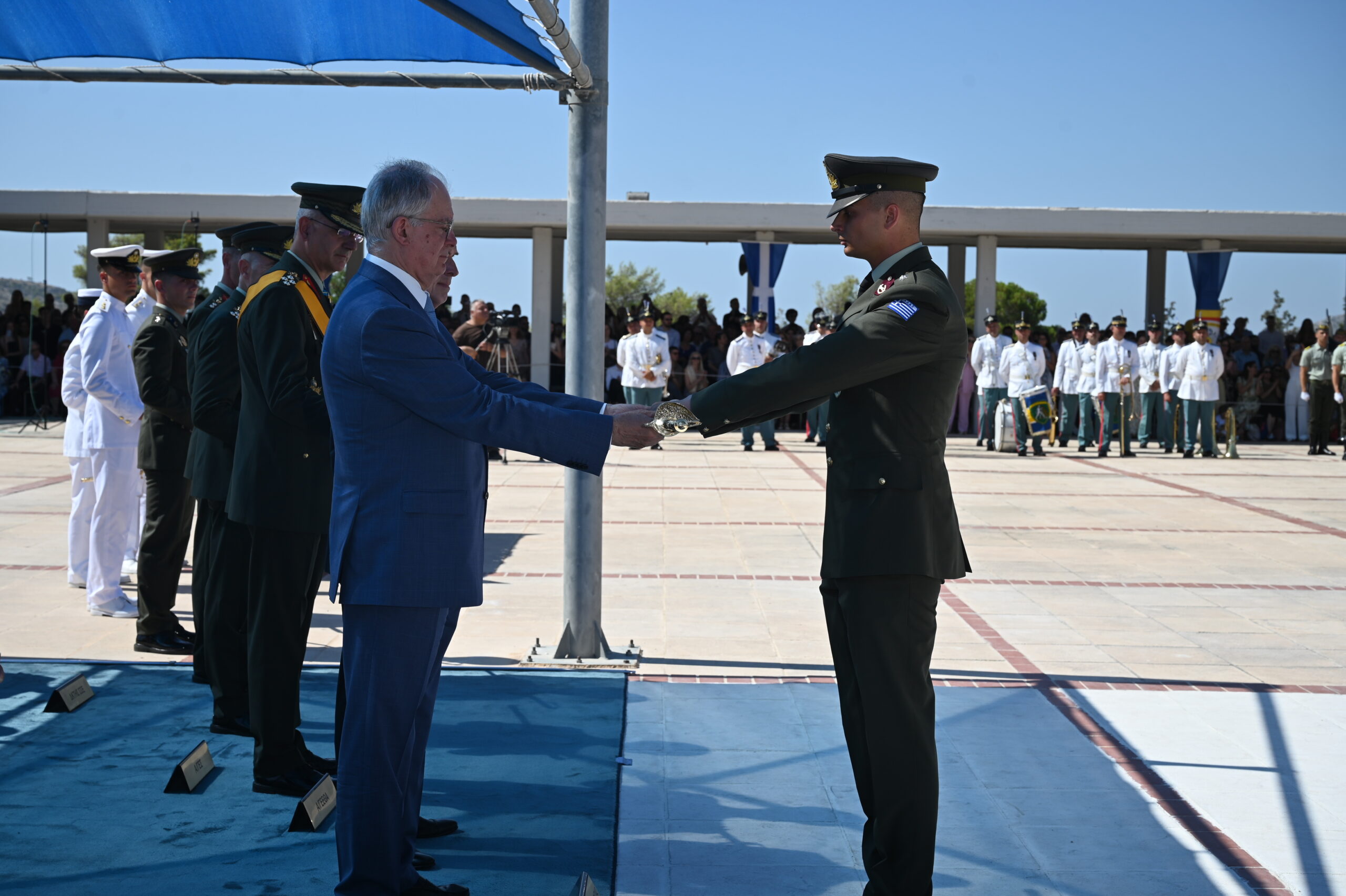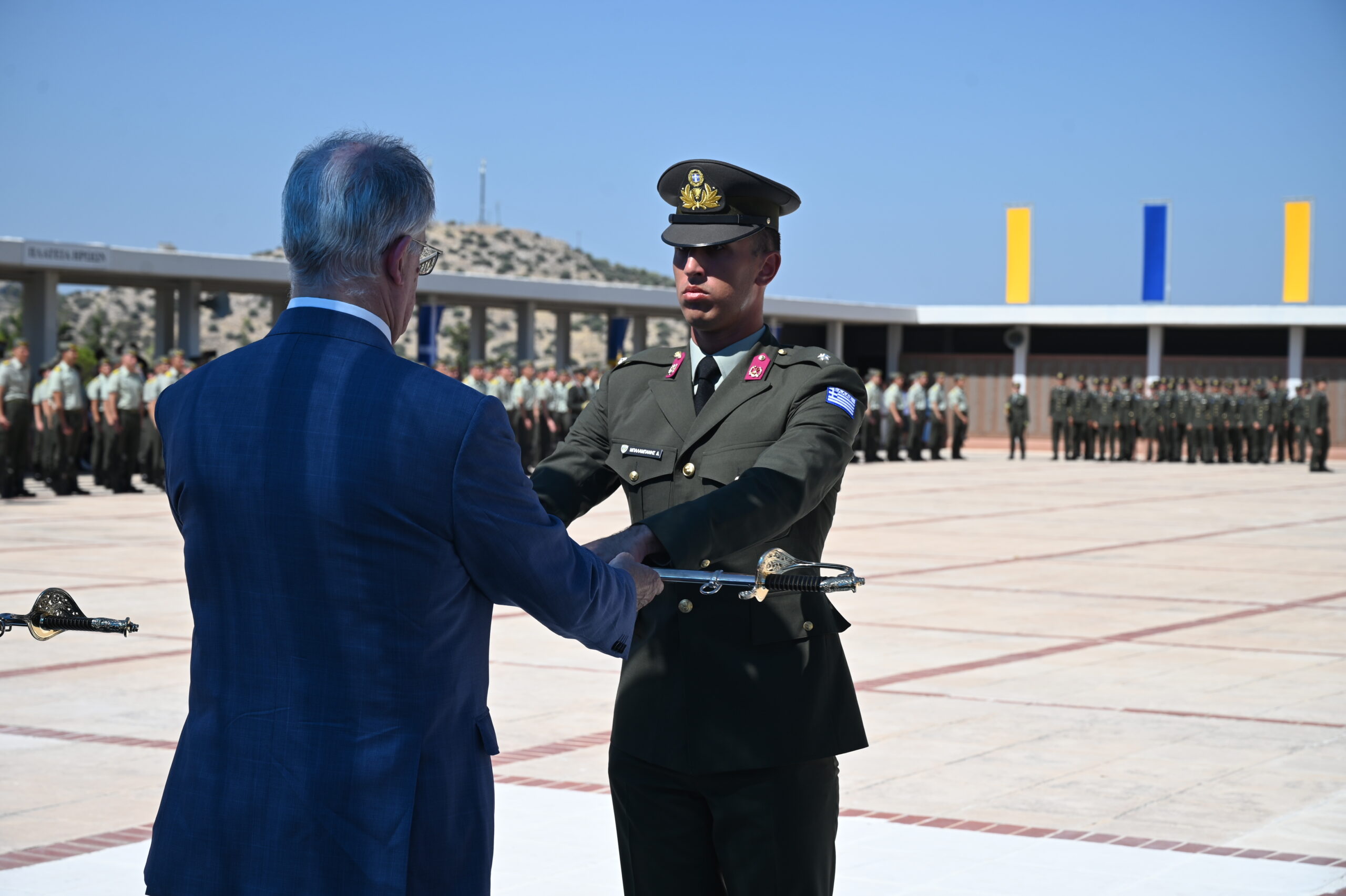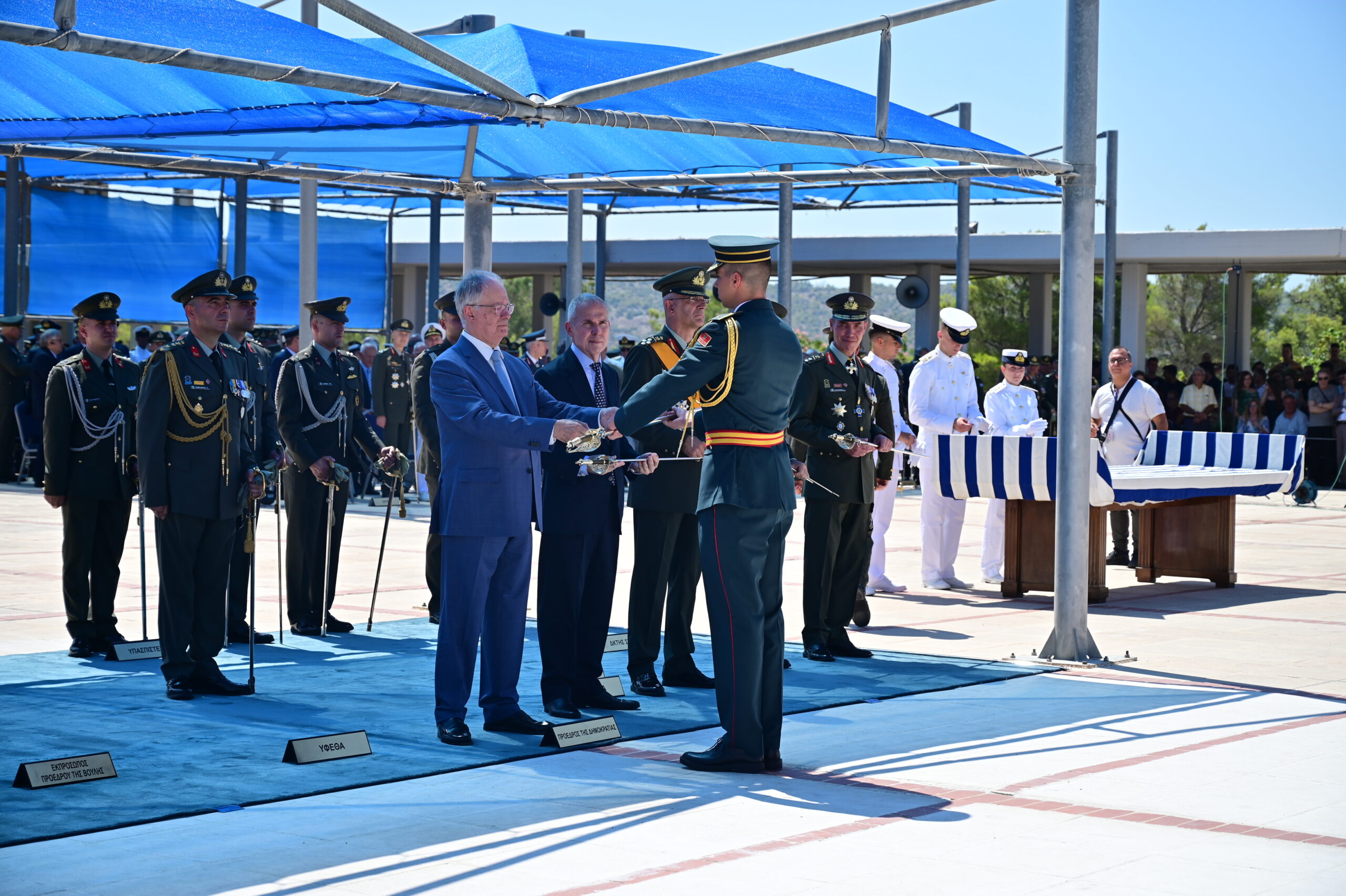 Τέλος, η Α.Ε ο Πρόεδρος της Δημοκρατίας κ. Κωνσταντίνος Τασούλας επέδωσε τα ξίφη στις οικογένειες των δύο εκλιπόντων κατά το έτος 2023 Ευέλπιδων ΙΙας Τάξης.