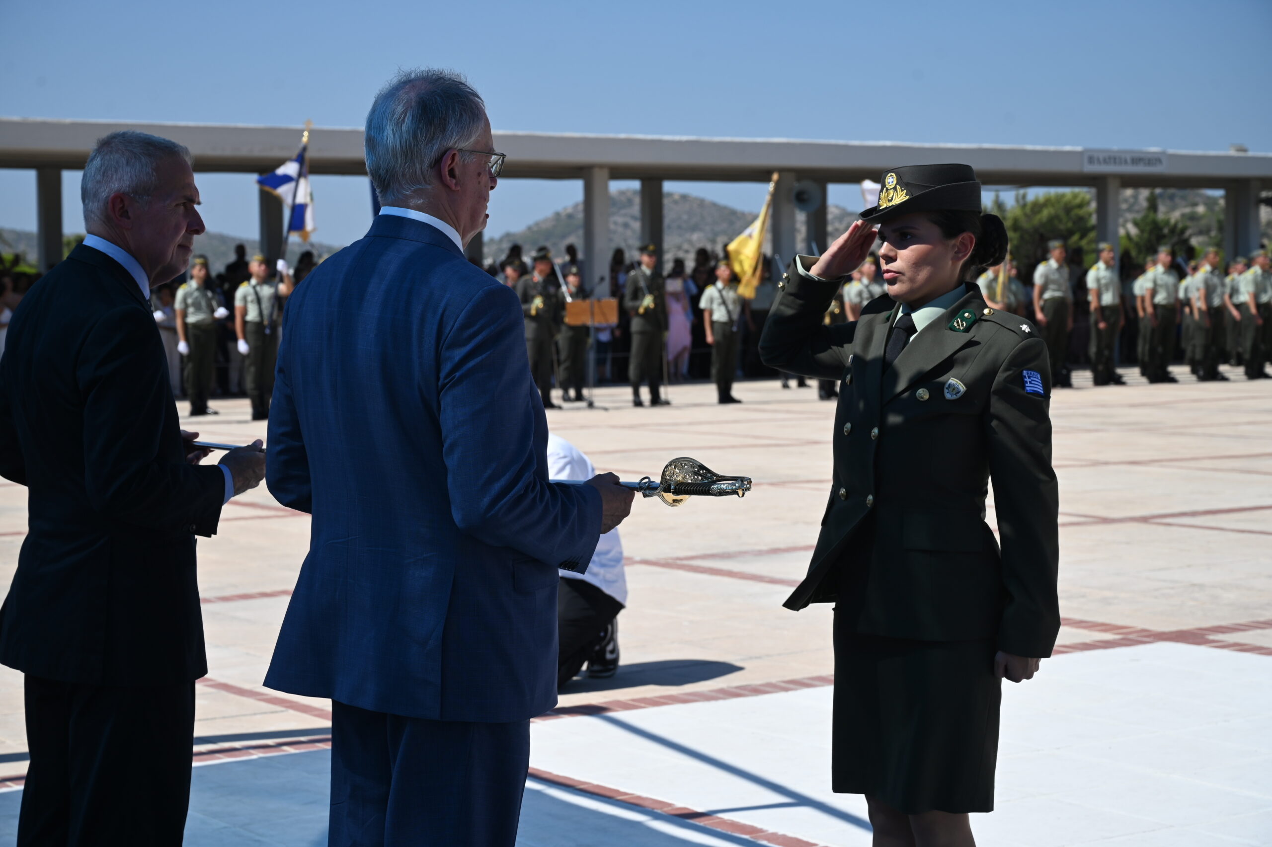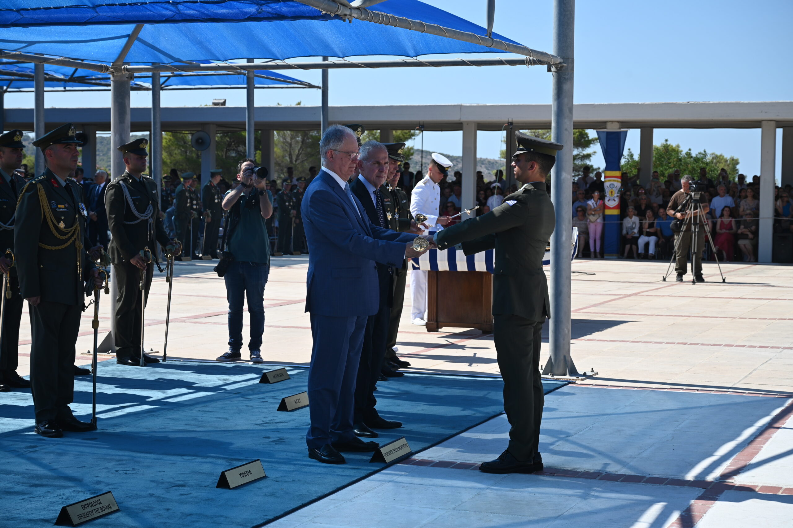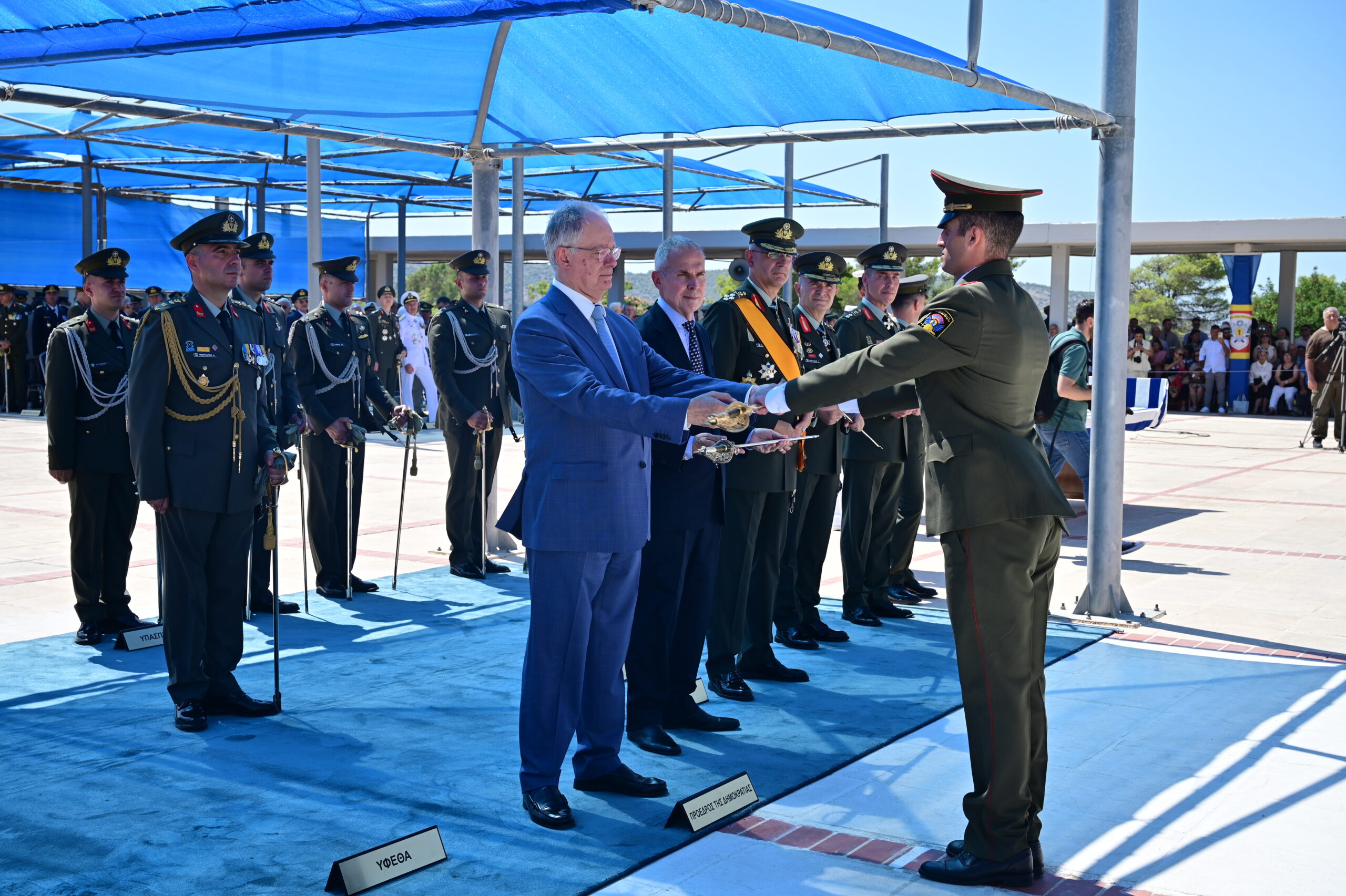 Τέλος, η Α.Ε ο Πρόεδρος της Δημοκρατίας κ. Κωνσταντίνος Τασούλας επέδωσε τα ξίφη στις οικογένειες των δύο εκλιπόντων κατά το έτος 2023 Ευέλπιδων ΙΙας Τάξης.